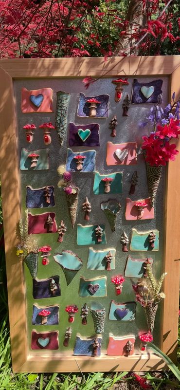 Erika Worman (E~Love) is a creative artist trained many mediums. Her love of all things clay began in a wheel throwing class at Lane Community College in 1992. Erika opened Elemental Play A Pottery Studio for Everyone 2001 in Eugene Oregon where she taught classes in hand building and wheel throwing. Children enjoyed after school programs, spring break and summer camps, parent child classes and even adults with clay and wine. These developed into the Exploring The Arts series where everyone could try a plethora of different mediums and mixed media. Returning home to the central Oregon coast 2017 to be closer to family and set up studio at home